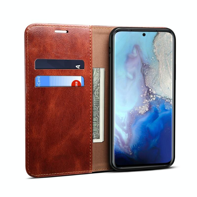 For Samsung Galaxy S20 Plus Simple Wax Crazy Horse Texture Horizontal Flip Leather Case with Card Slots & Wallet(Brown)