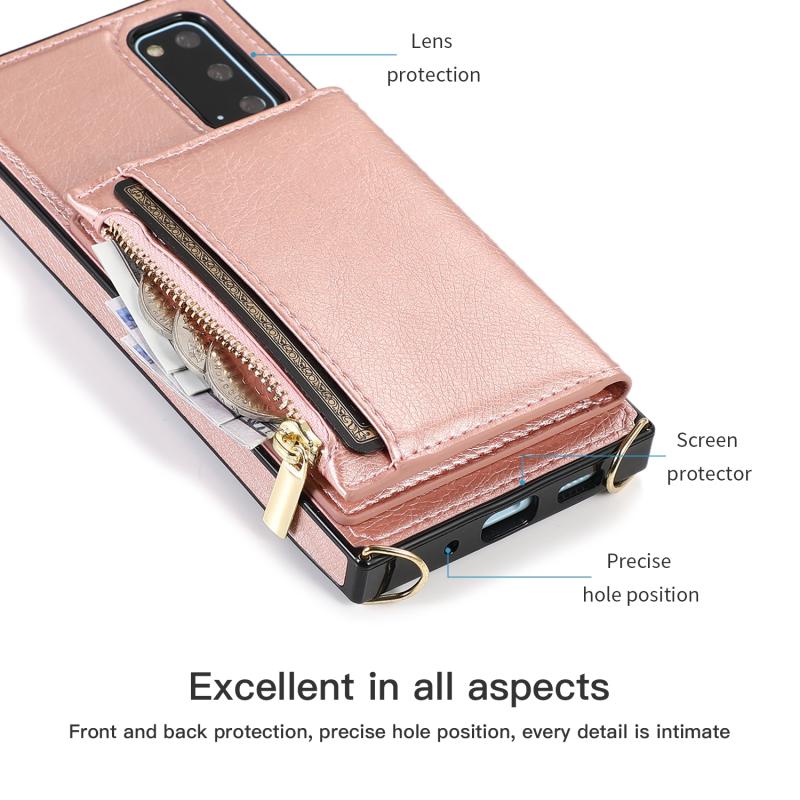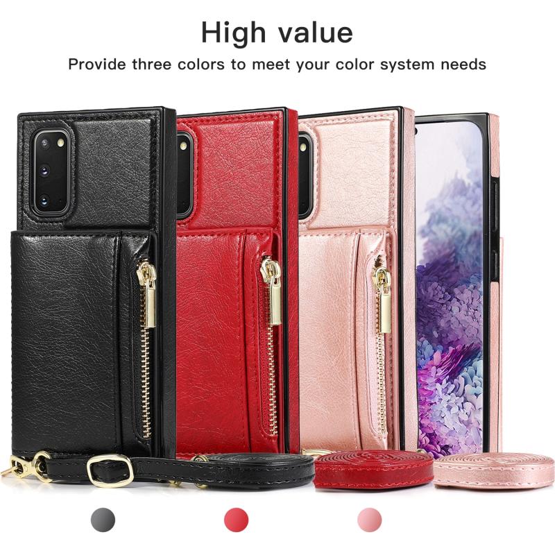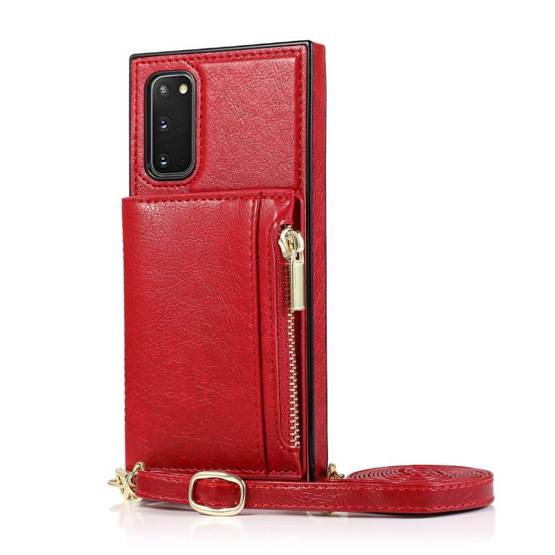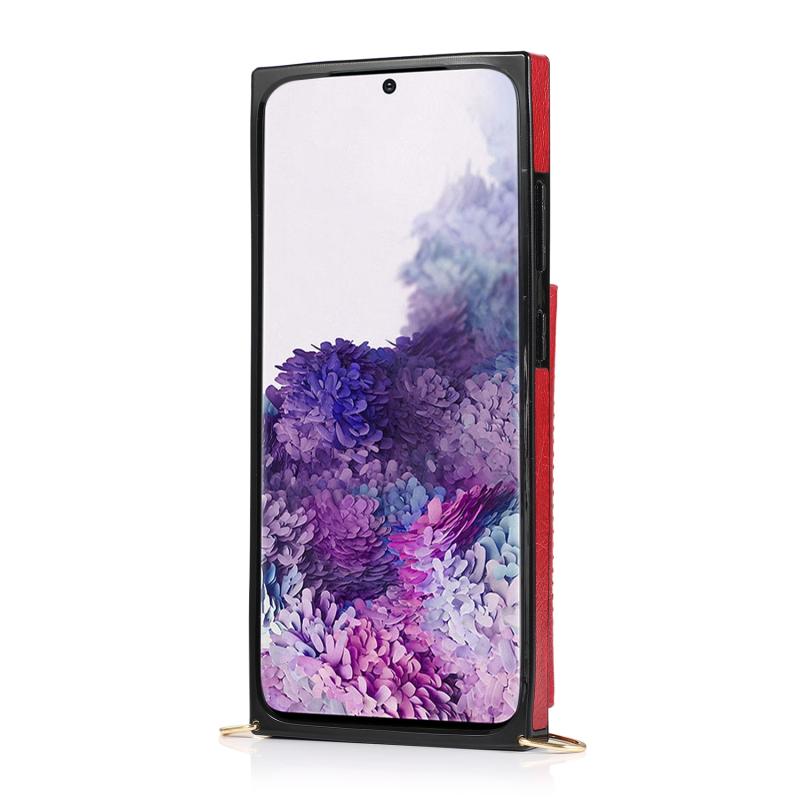 For Samsung Galaxy S20 Plus Square Zipper Wallet Bag TPU+PU Back Cover Case with Holder & Card Slots & Wallet & Cross-body Strap(Red)