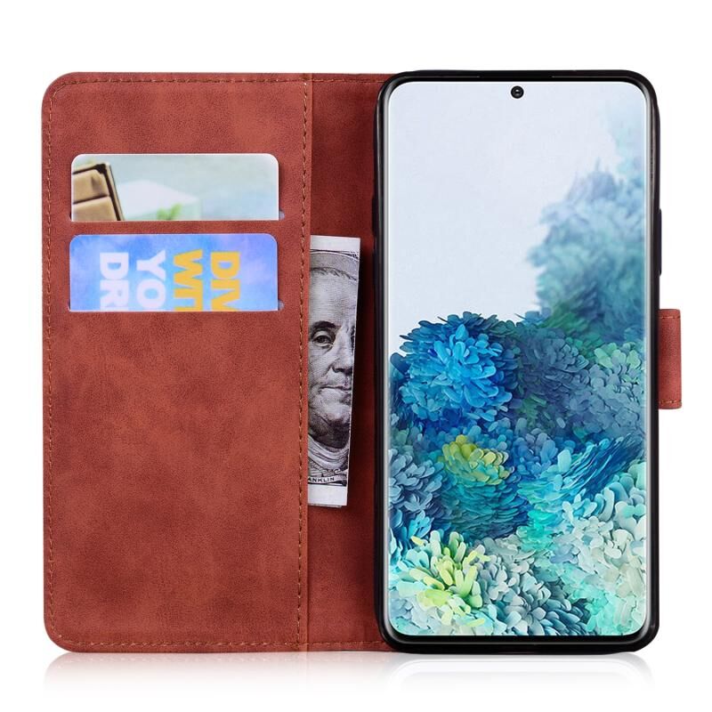 Θήκη δέρματος οριζόντιας αναδίπλωσης με ανάγλυφο μοτίβο τίγρης για Samsung Galaxy S20 Plus με βάση & υποδοχές καρτών & πορτοφόλι (Καφέ)