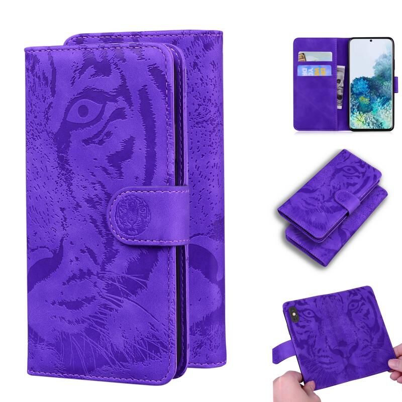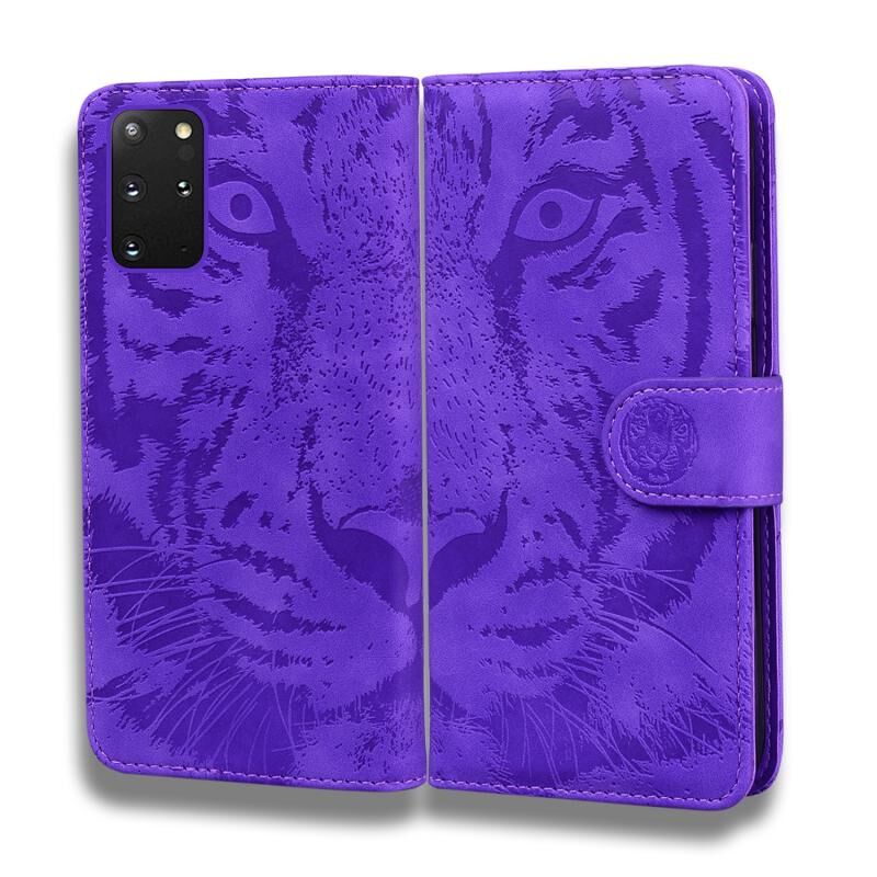 Θήκη δέρματος οριζόντιας αναδίπλωσης με ανάγλυφο μοτίβο τίγρης για Samsung Galaxy S20 Plus με βάση & υποδοχές καρτών & πορτοφόλι (Καφέ)