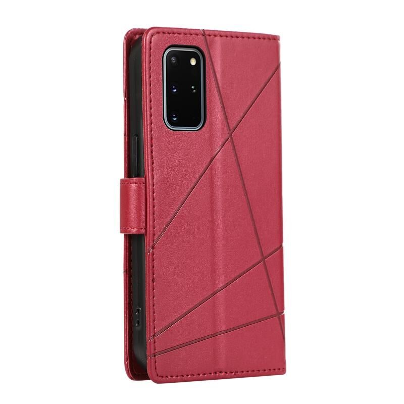 Θήκη τηλεφώνου για Samsung Galaxy S20+ από γνήσιο δέρμα PU με ανάγλυφη υφή και λεπτομέρειες γραμμής (Μπλε)