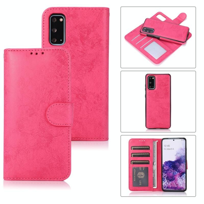 Για Samsung Galaxy S20 Retro 2 σε 1 Αποσπώμενο μαγνητικό οριζόντιο Flip TPU + PU δέρμα υπόθεση με θήκη & υποδοχές για κάρτες & πλαίσιο φωτογραφιών & πορτοφόλι (ροζ)