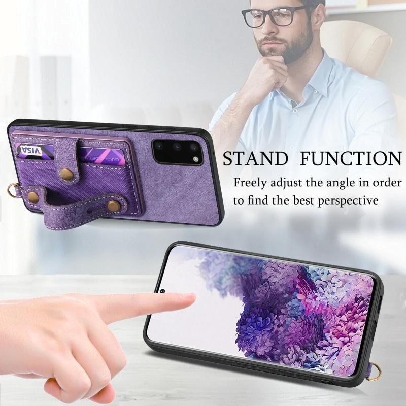 Για Samsung Galaxy S20 Ρετρό σταυρό Wristband πορτοφόλι δέρμα πίσω υπόθεση τηλεφώνου (Μωβ)