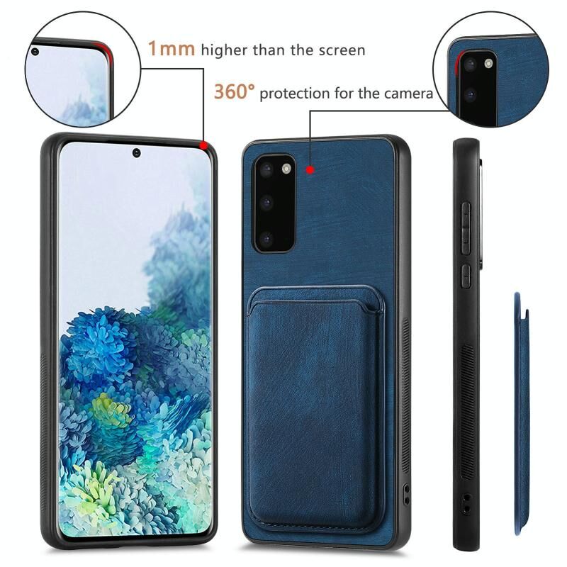 Για Samsung Galaxy S20 Ρετρό δερμάτινη τσάντα κάρτα μαγνητική θήκη τηλεφώνου (Μπλε)