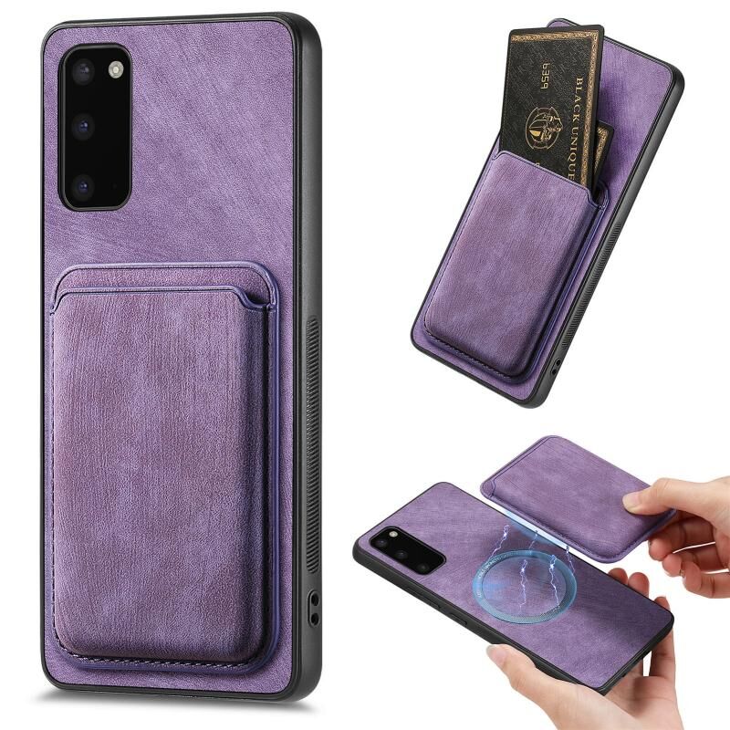 Για Samsung Galaxy S20 Ρετρό δερμάτινη τσάντα κάρτα μαγνητική θήκη τηλεφώνου (μωβ)