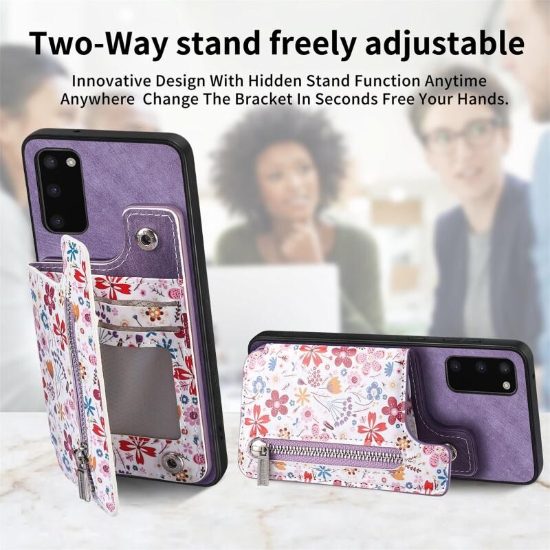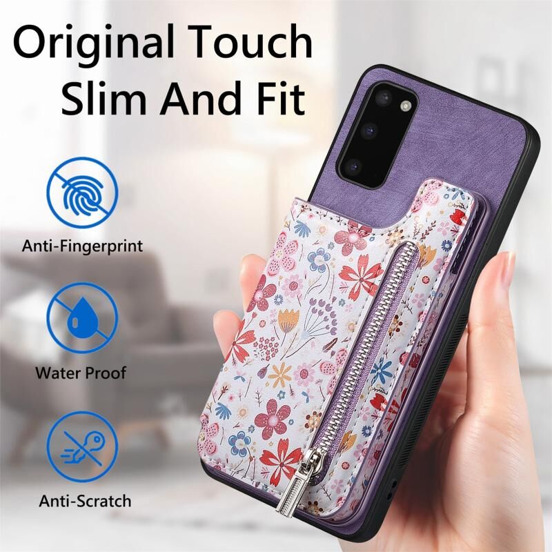 Θήκη κινητού Samsung Galaxy S20 με σχέδιο retro, φερμουάρ και θήκη πορτοφολιού (Ροζ)