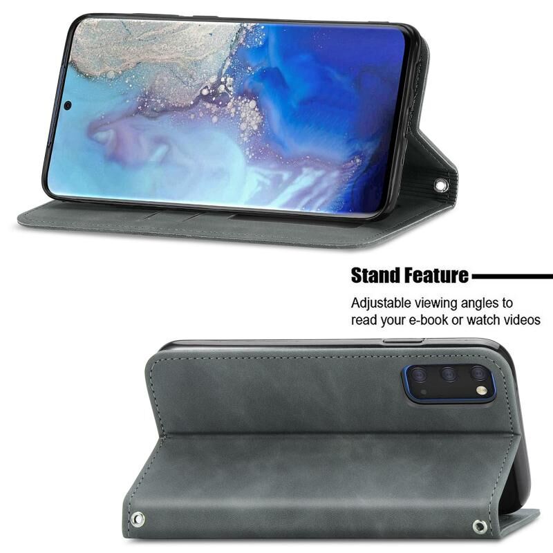 Για Samsung Galaxy S20 Retro Skin Feel Business μαγνητική οριζόντια Flip δερμάτινη θήκη με υποδοχές για κάρτες & πορτοφόλι & πλαίσιο φωτογραφιών (Γκρι)