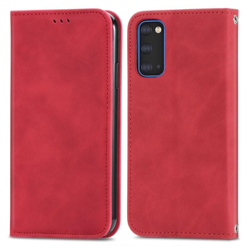 Για Samsung Galaxy S20 Retro Skin Feel Business μαγνητική οριζόντια Flip δερμάτινη θήκη με υποδοχές για κάρτες & πορτοφόλι & πλαίσιο φωτογραφιών (Κόκκινο)