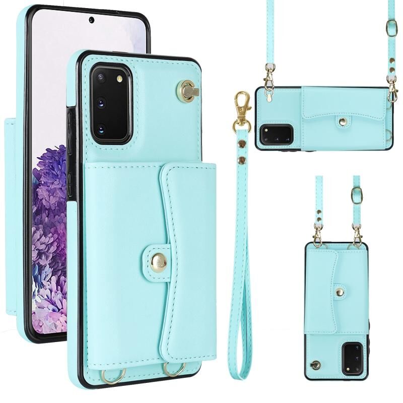 Για Samsung Galaxy S20 RFID Slot κάρτα δερμάτινη θήκη τηλεφώνου με μακρύ κορδόνι (πράσινο χρώμα)
