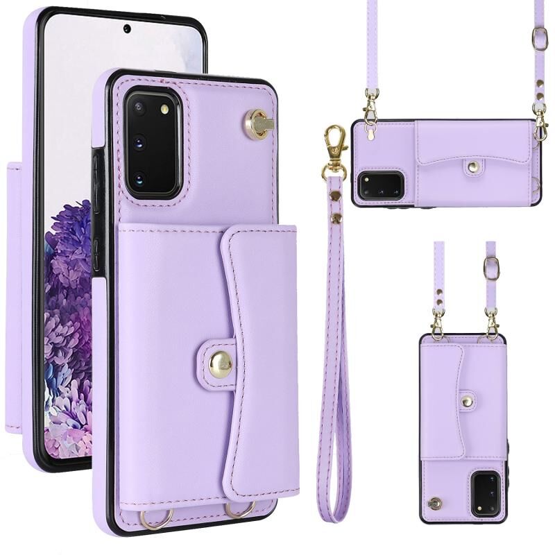 Για Samsung Galaxy S20 RFID Slot κάρτα δερμάτινη θήκη τηλεφώνου με μακρύ κορδόνι (μωβ)