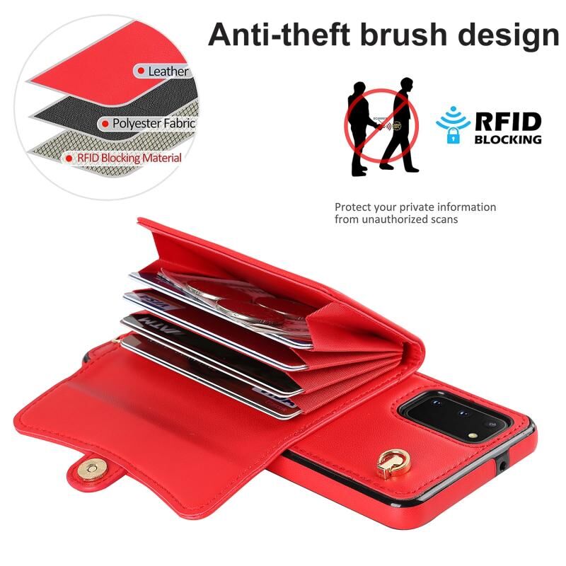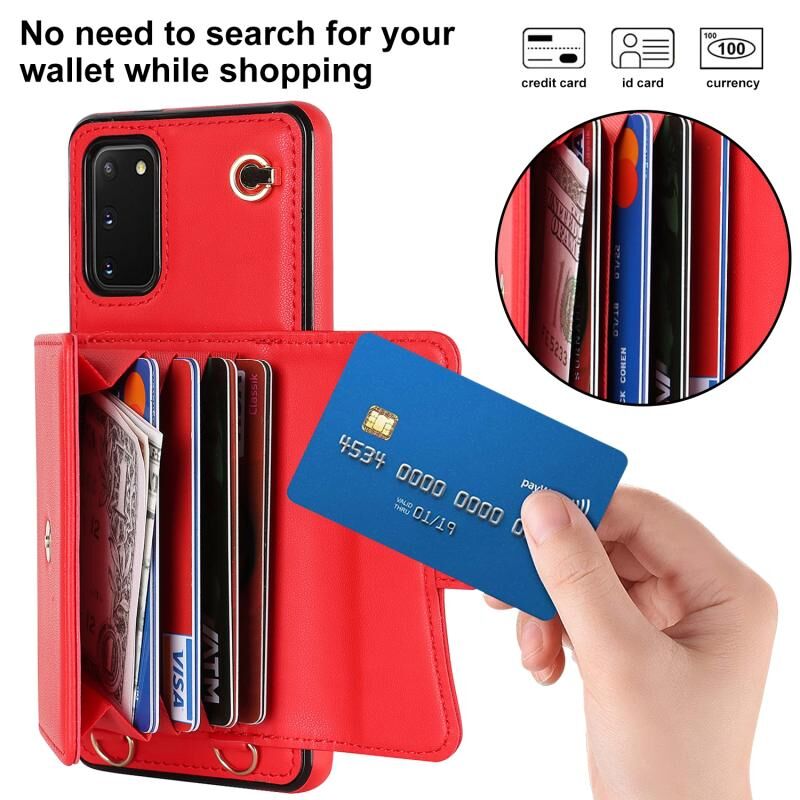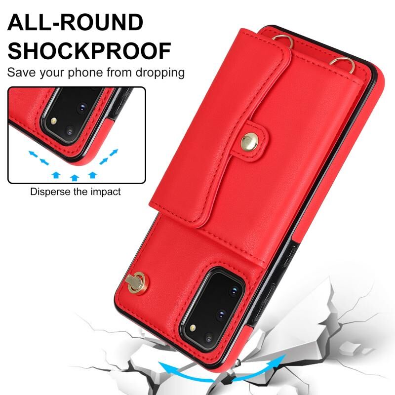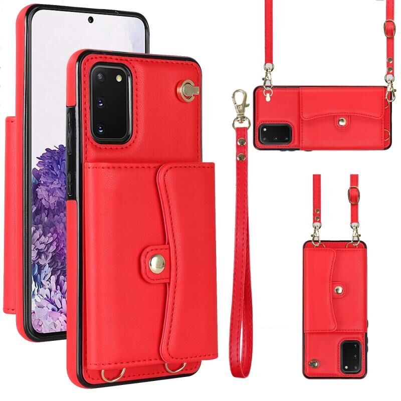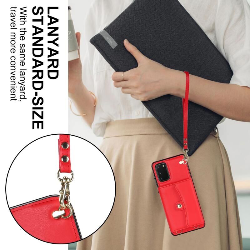 Για Samsung Galaxy S20 RFID Slot κάρτα δερμάτινη θήκη τηλεφώνου με μακρύ κορδόνι (κόκκινο)