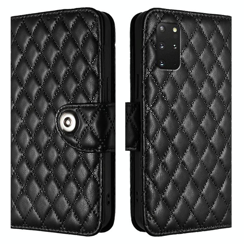 Για Samsung Galaxy S20+ Rhombic Texture Flip δερμάτινη θήκη τηλεφώνου με κορδόνι (Μαύρο)