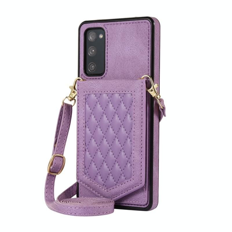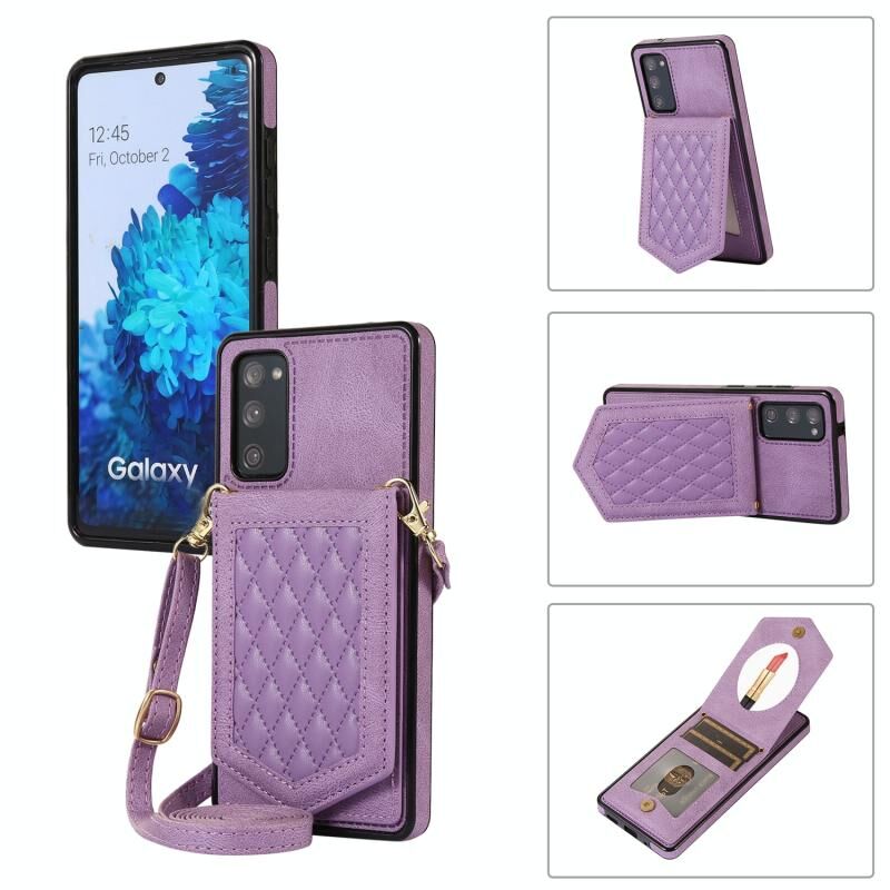 Για Samsung Galaxy S20+ Rhombic Texture RFID θήκη τηλεφώνου με κορδόνι & καθρέφτη (μωβ)