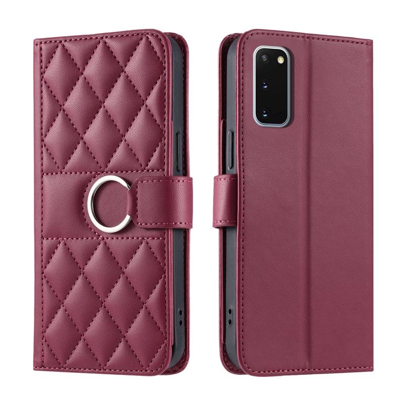 For Samsung Galaxy S20 Ring Buckle Rhombic Leather Phone Case(Red)