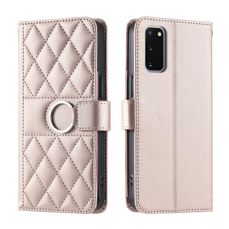 Θήκη τηλεφώνου Samsung Galaxy S20 με δακτύλιο και δερμάτινη υφή σε ρόμβους (Ροζ χρυσός)