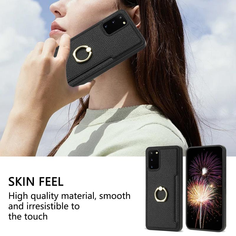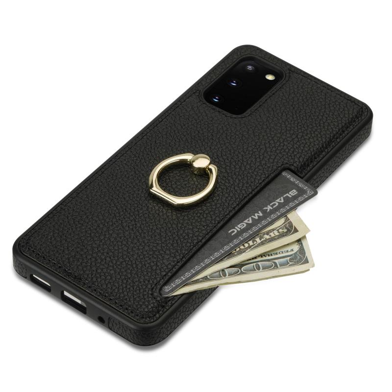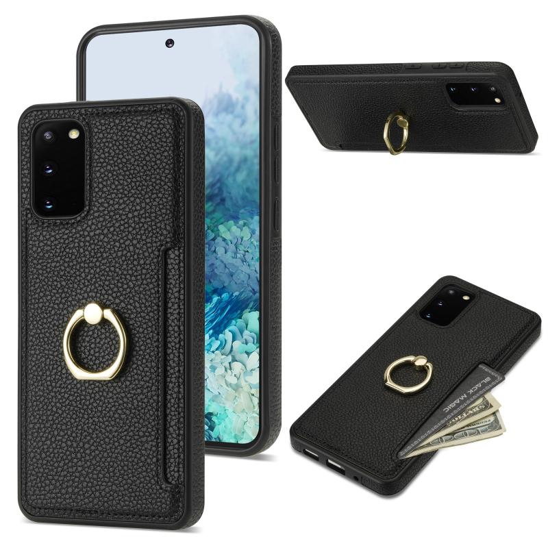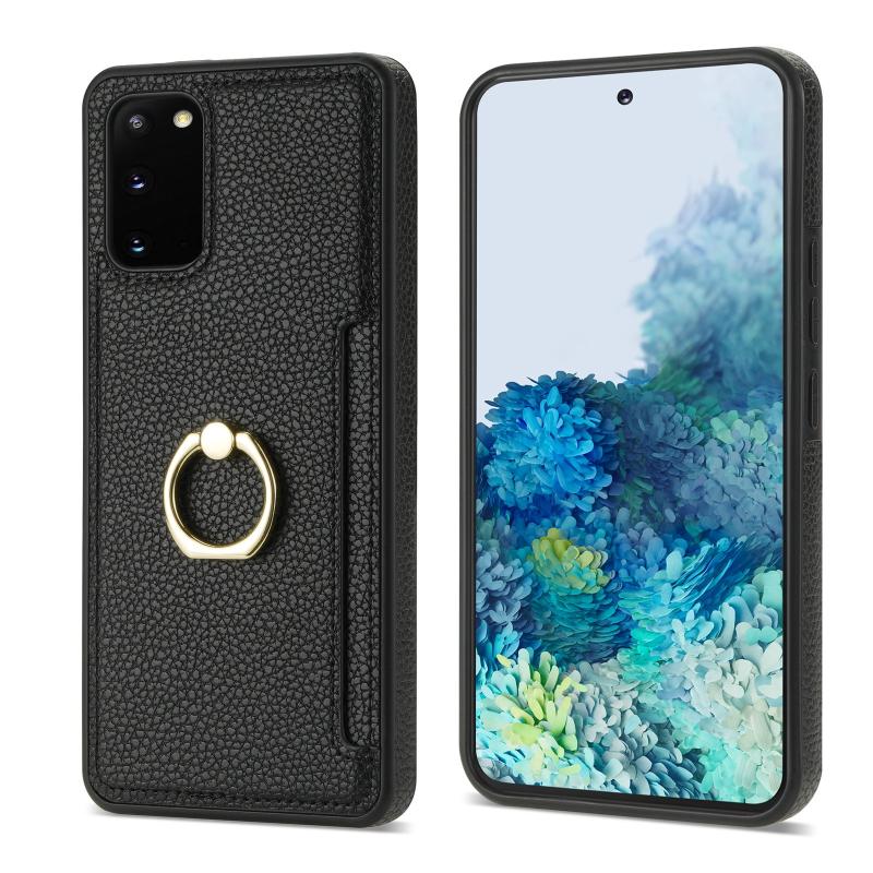 For Samsung Galaxy S20+ Ring Card Litchi Leather Back Phone Case(Black)