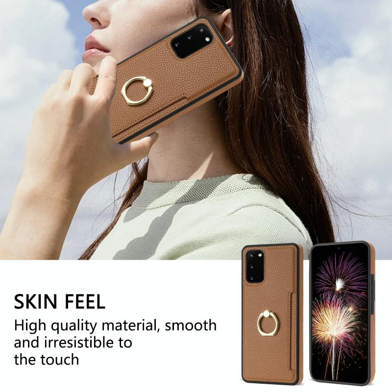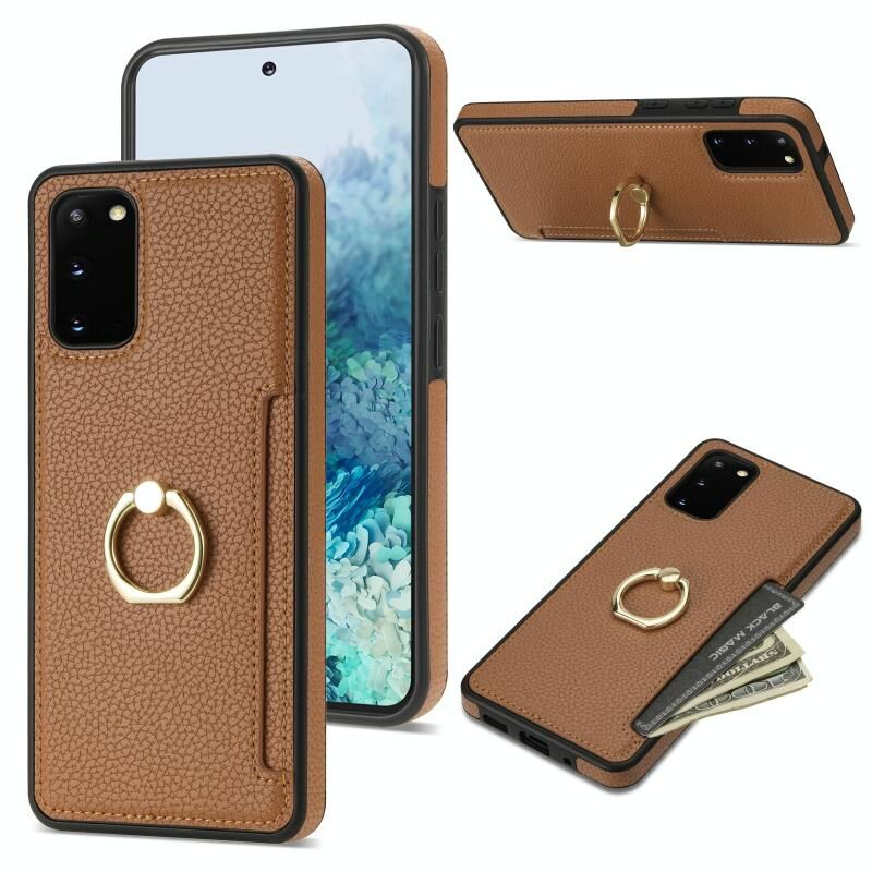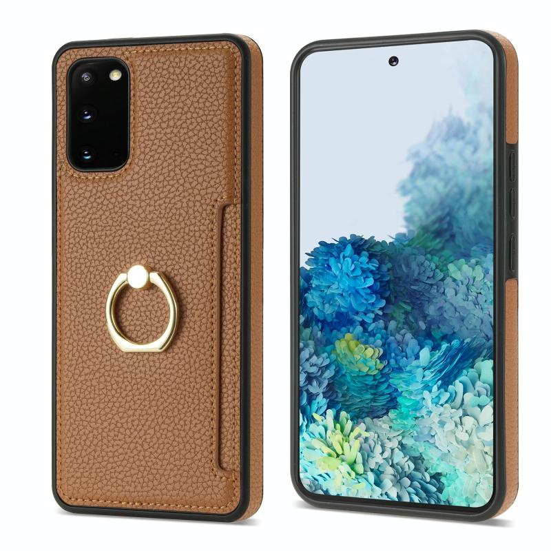For Samsung Galaxy S20+ Ring Card Litchi Leather Back Phone Case(Brown)