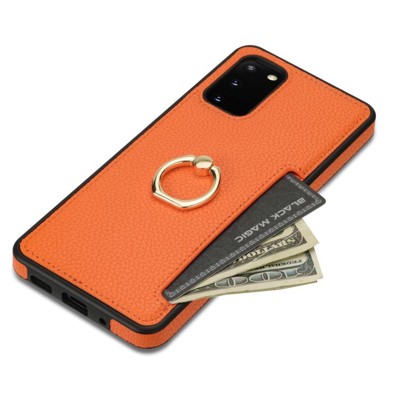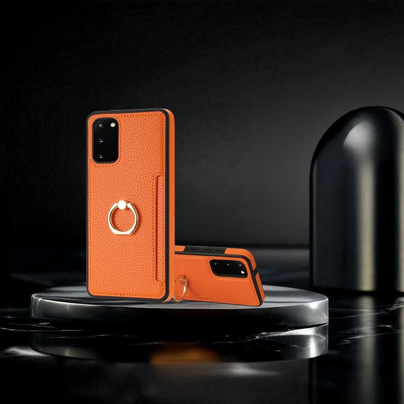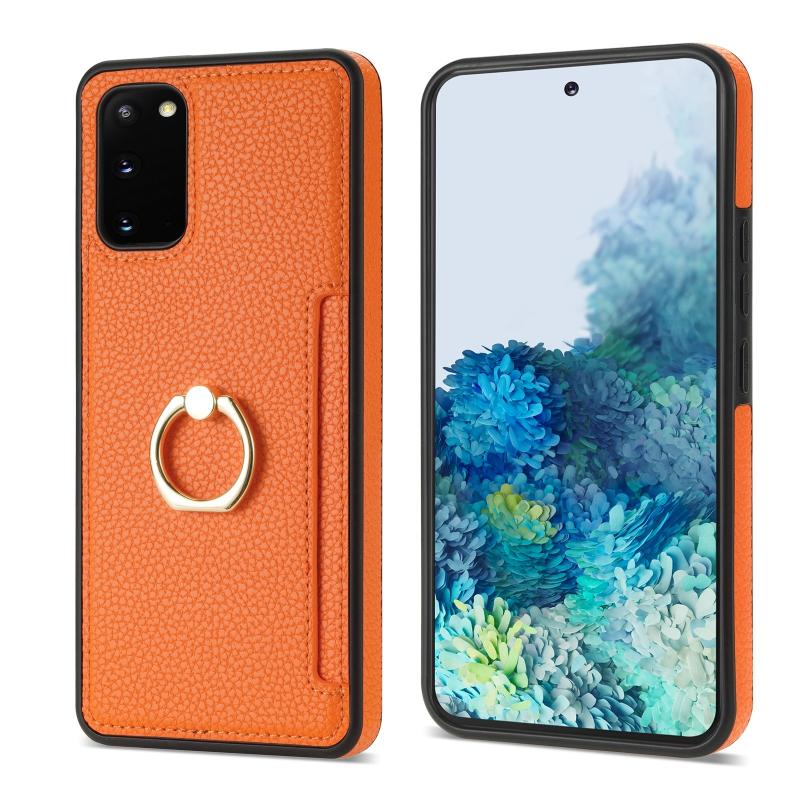 For Samsung Galaxy S20 Ring Card Litchi Leather Back Phone Case(Orange)