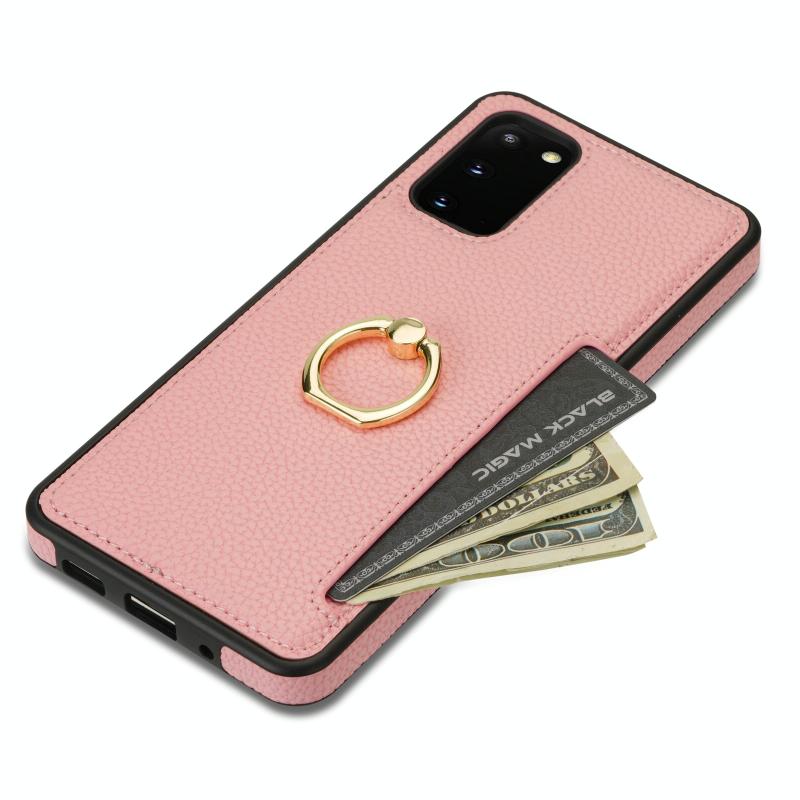 For Samsung Galaxy S20 Ring Card Litchi Leather Back Phone Case(Pink)