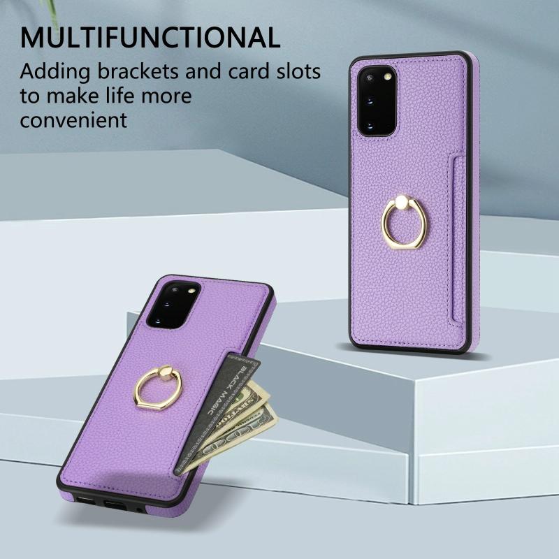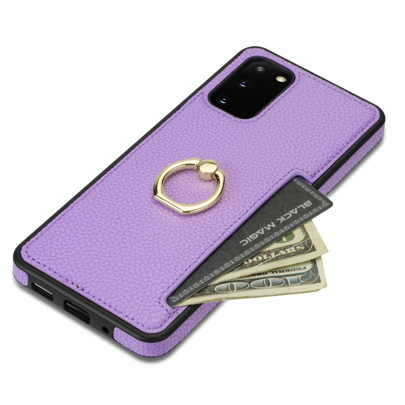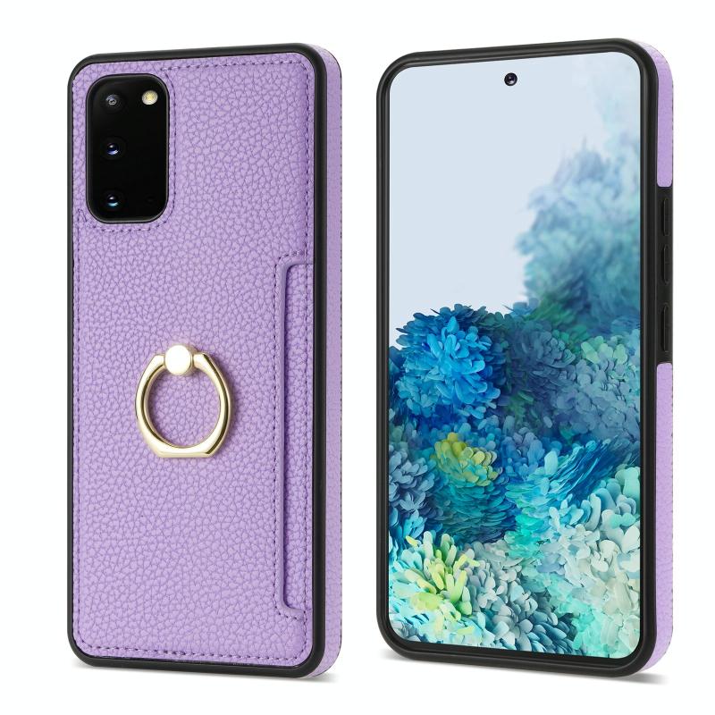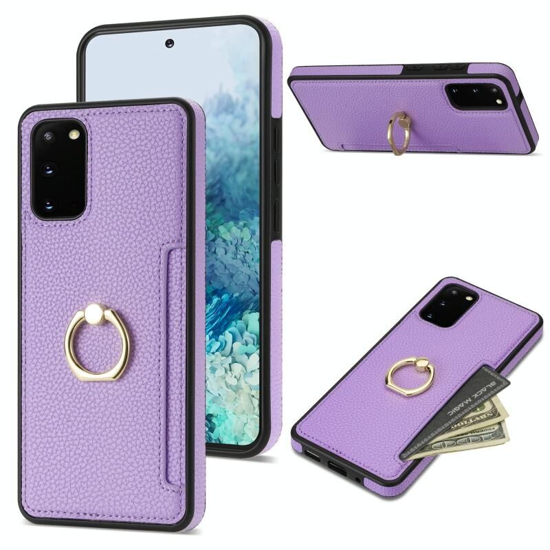For Samsung Galaxy S20+ Ring Card Litchi Leather Back Phone Case(Purple)