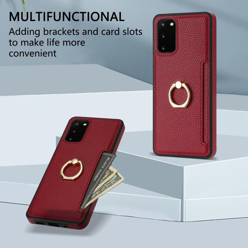 For Samsung Galaxy S20+ Ring Card Litchi Leather Back Phone Case(Red)