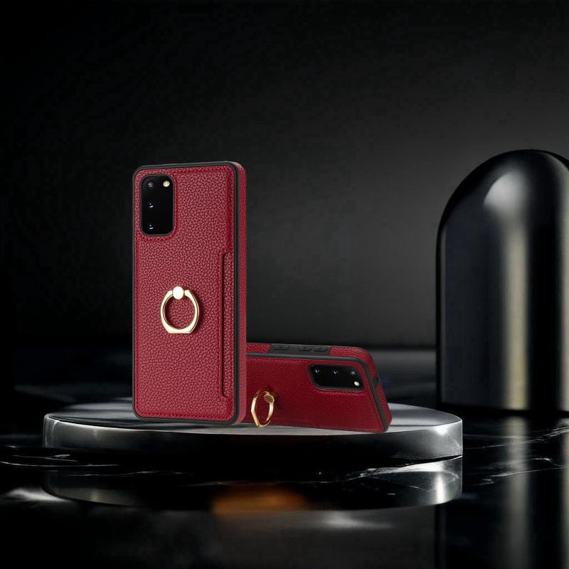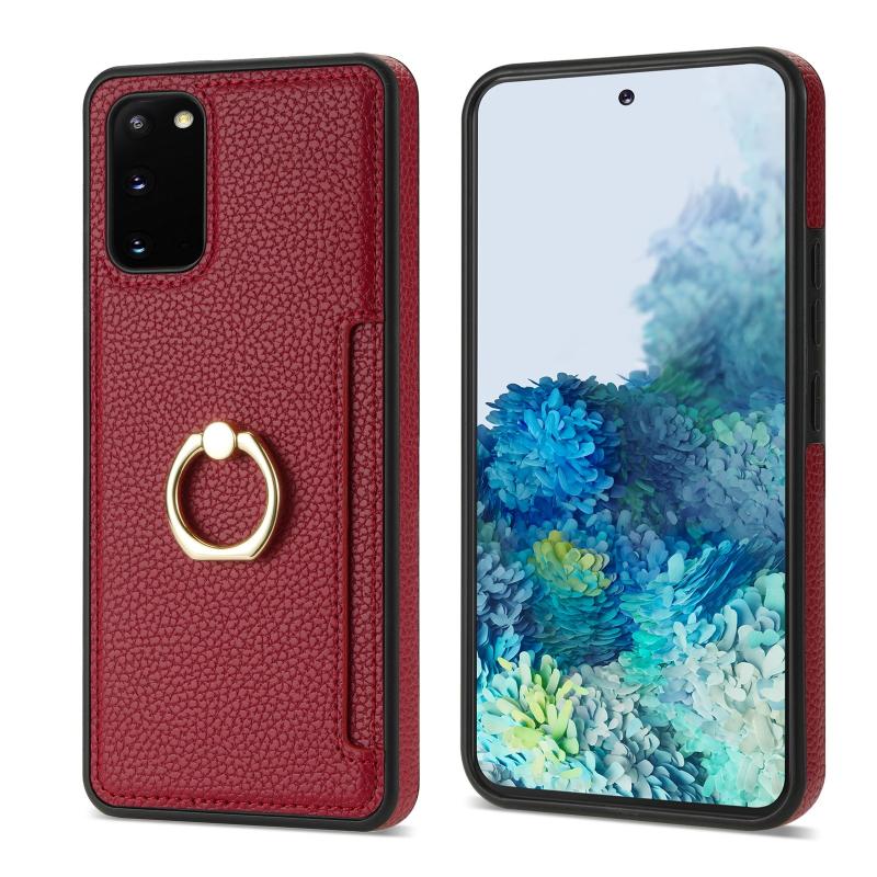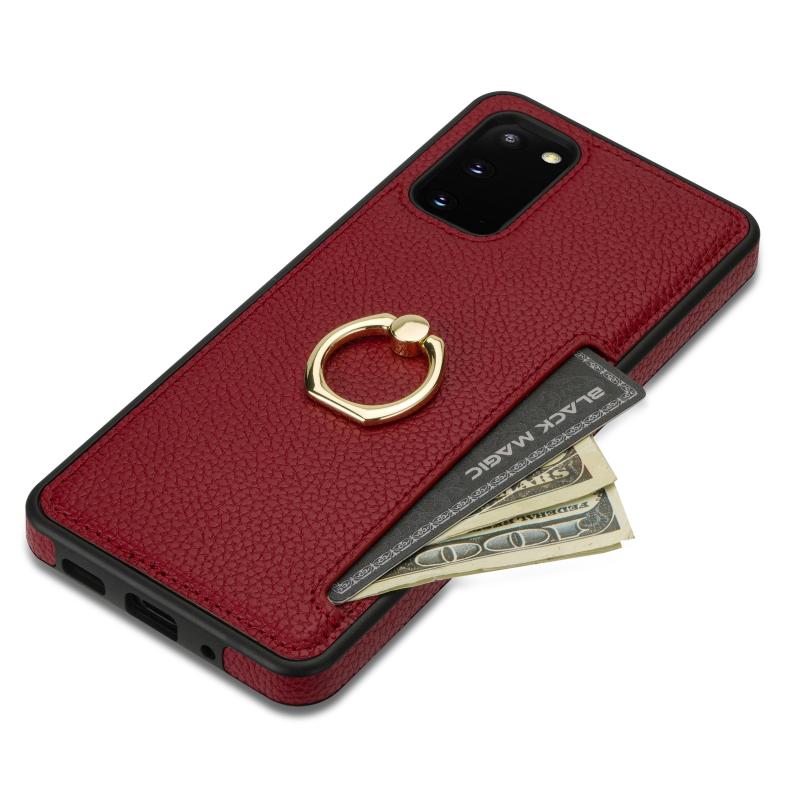 For Samsung Galaxy S20 Ring Card Litchi Leather Back Phone Case(Red)