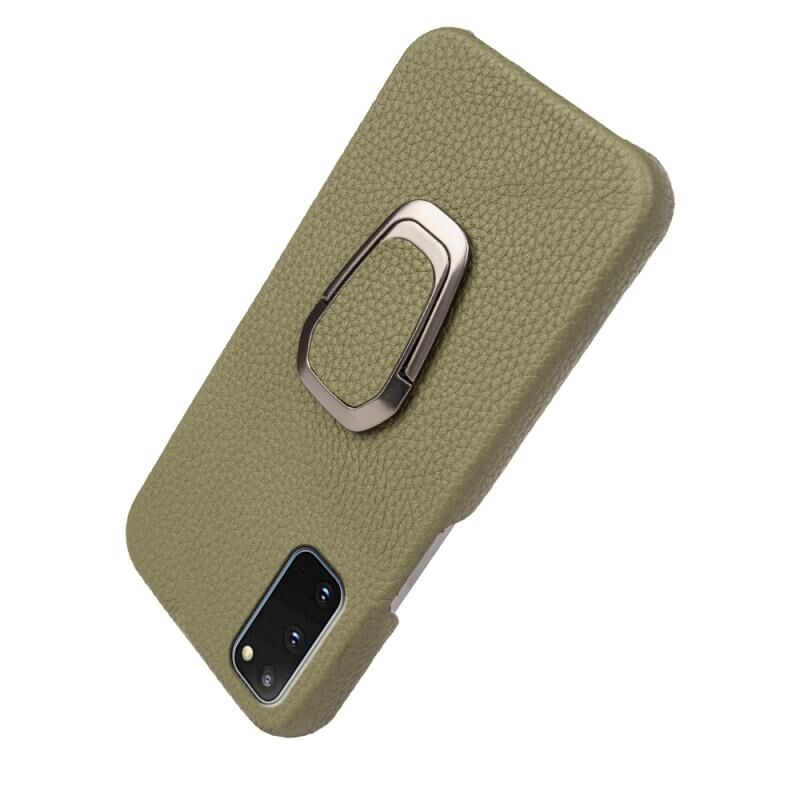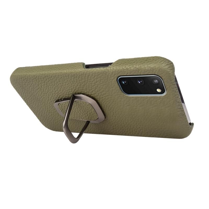 Θήκη κινητού Samsung Galaxy S20 με δακτύλιο και γνήσιο δέρμα υφής λύτσι (Μαύρο)