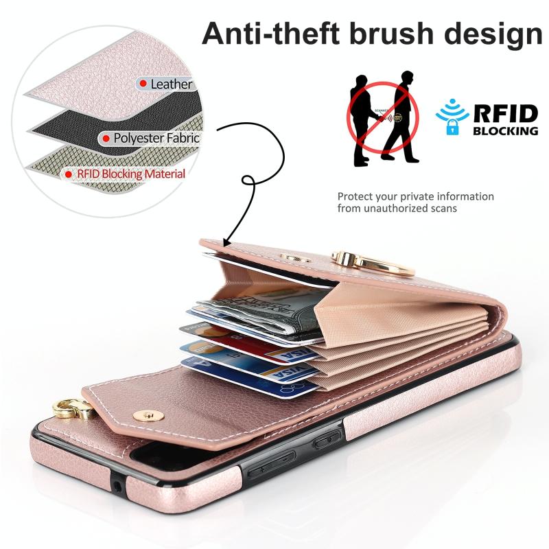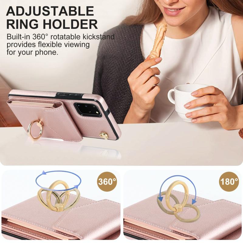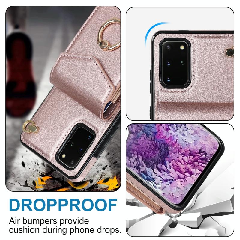 Θήκη κινητού τηλεφώνου για Samsung Galaxy S20+ με δακτύλιο στήριξης και θήκη καρτών RFID (Ροζ χρυσός)