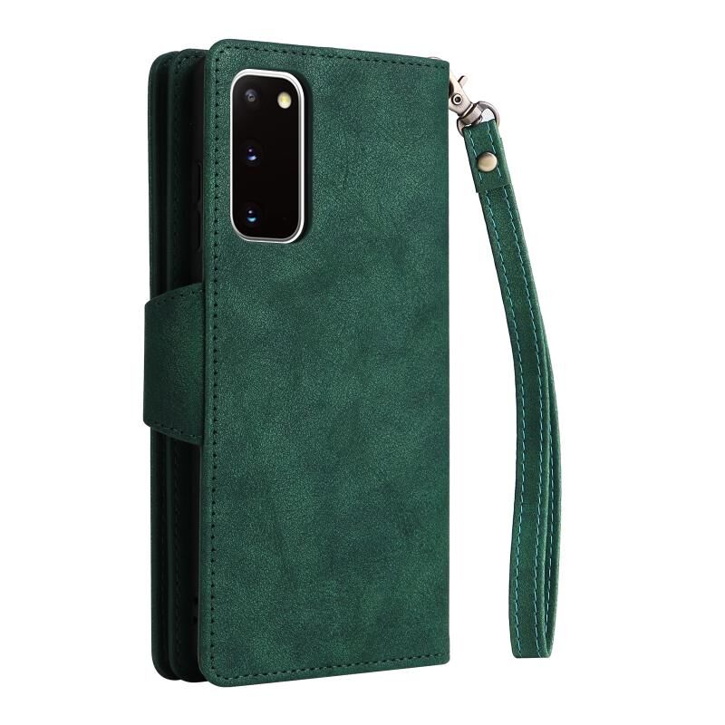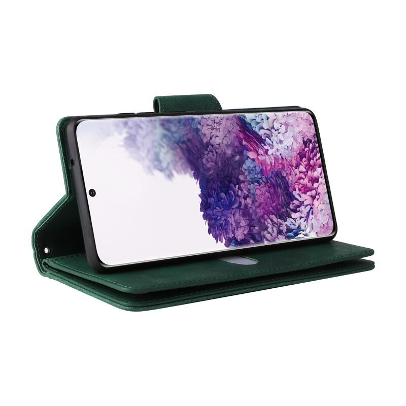 Για Samsung Galaxy S20 Rivet πόρπη 9 κάρτες τρεις φορές δερμάτινη θήκη τηλεφώνου (πράσινο)