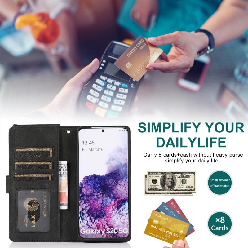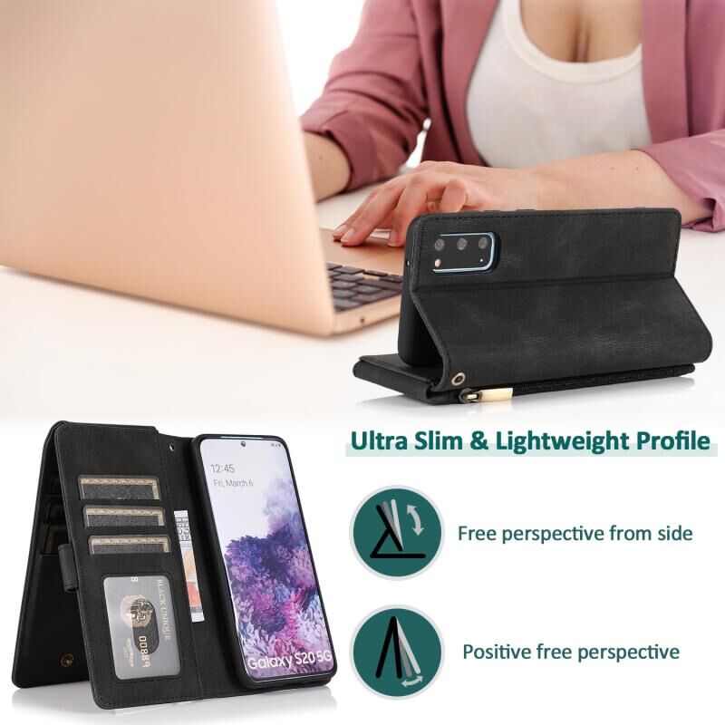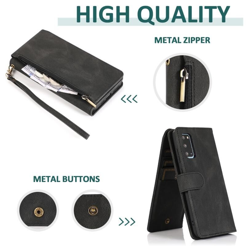 Για Samsung Galaxy S20 Skin-feel Crazy Horse υφή φερμουάρ τσάντα πορτοφόλι οριζόντια Flip δερμάτινη θήκη με κάτοχο & υποδοχές για κάρτες & πορτοφόλι & Lanyard (Μαύρο)