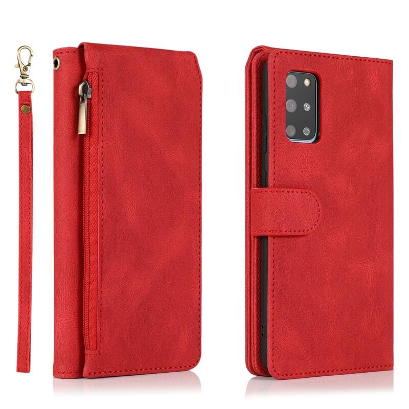 Για Samsung Galaxy S20+ Skin-feel Crazy Horse υφή φερμουάρ τσάντα πορτοφόλι οριζόντια Flip δερμάτινη θήκη με κάτοχο & υποδοχές για κάρτες & πορτοφόλι & Lanyard (κόκκινο)