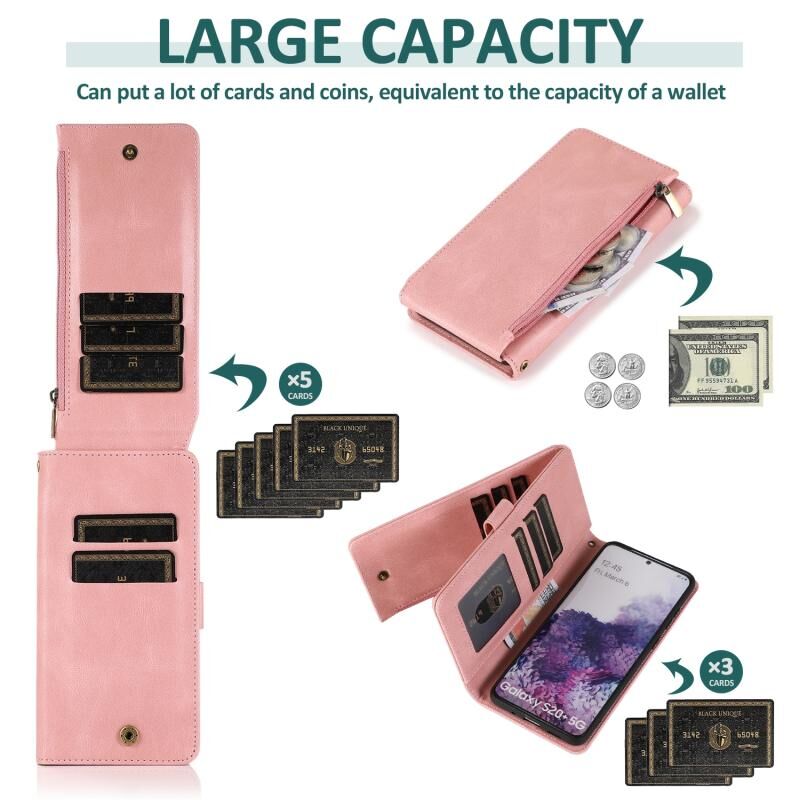 Για Samsung Galaxy S20+ Skin-feel Crazy Horse υφή φερμουάρ τσάντα πορτοφόλι οριζόντια Flip δερμάτινη θήκη με κάτοχο & υποδοχές για κάρτες & πορτοφόλι & Lanyard (Rose Gold)