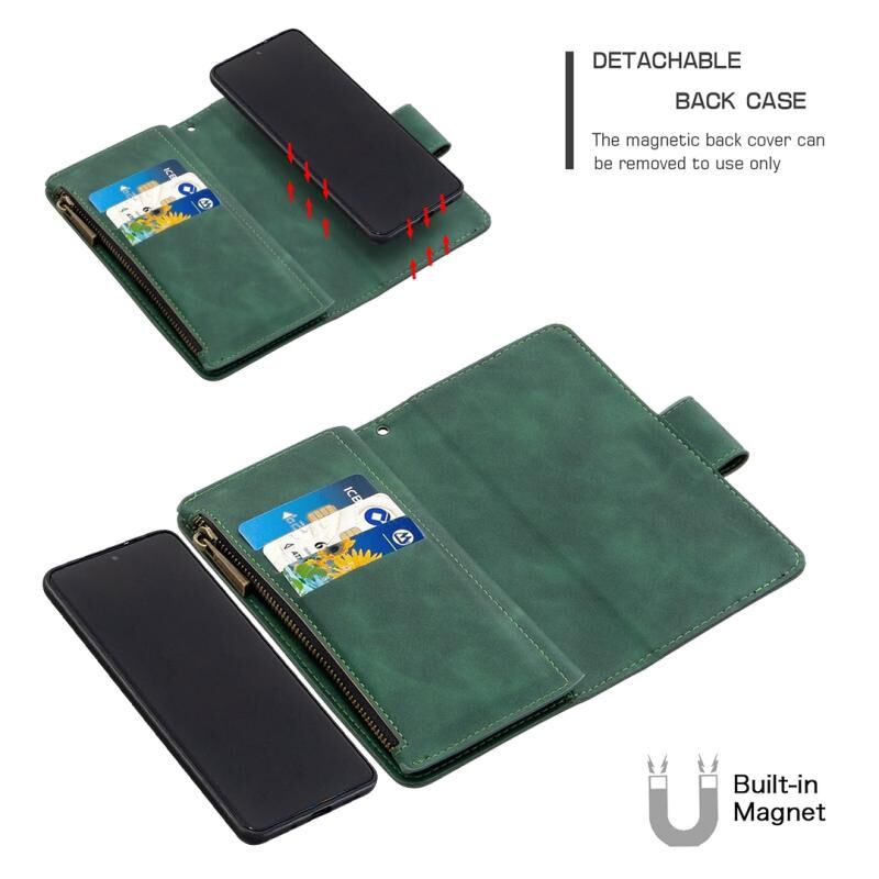Για το Samsung Galaxy S20+ Skin Feel Αποσπώμενη μαγνητική θήκη με φερμουάρ και οριζόντια αναδιπλούμενη PU δερμάτινη θήκη με υποδοχές για πολλαπλές κάρτες & θήκη για πορτοφόλι & κορνίζα φωτογραφιών & κορδόνι (πράσινο)