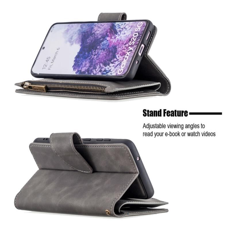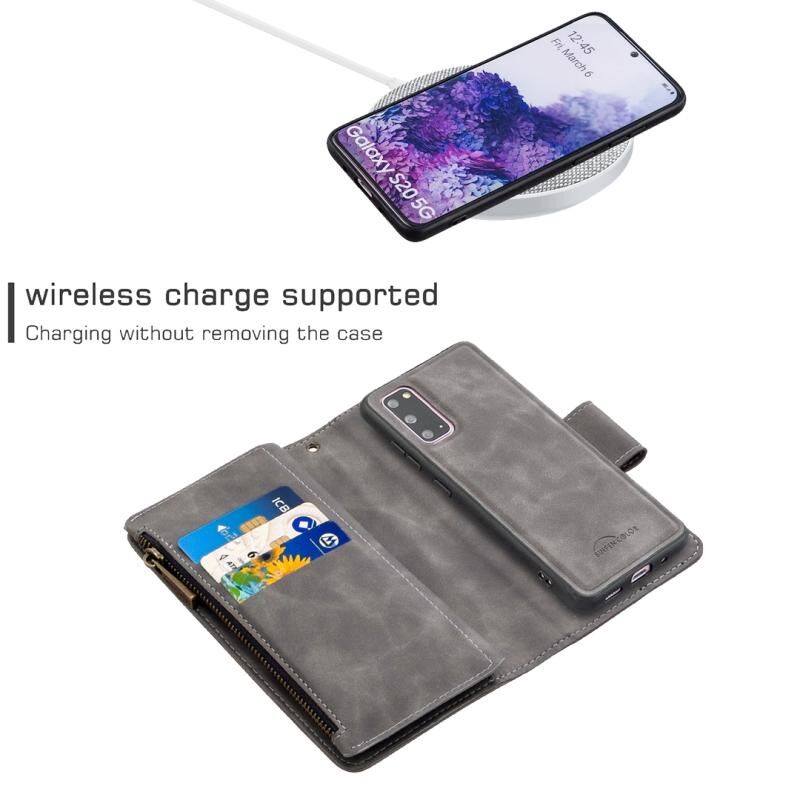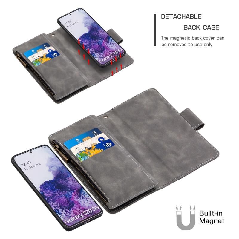 Για το Samsung Galaxy S20 Skin Feel Αποσπώμενη μαγνητική θήκη με φερμουάρ και οριζόντια αναδιπλούμενη PU δερμάτινη θήκη με υποδοχές για πολλές κάρτες & θήκη για πορτοφόλι & κορνίζα φωτογραφιών & κορδόνι (γκρι)