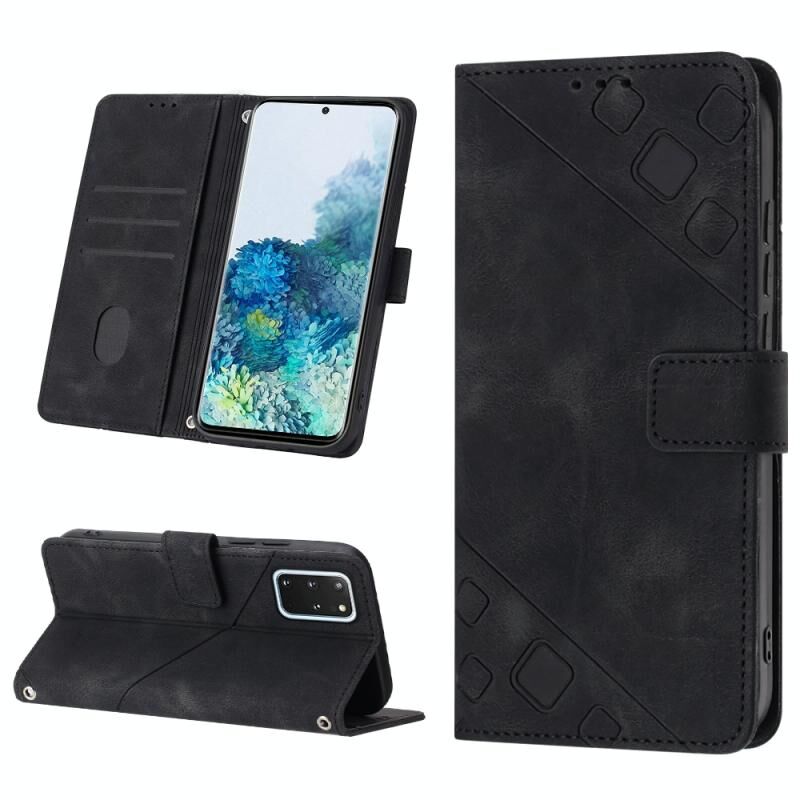 Για Samsung Galaxy S20+ Skin-feel ανάγλυφη δερμάτινη θήκη τηλεφώνου (Μαύρο)