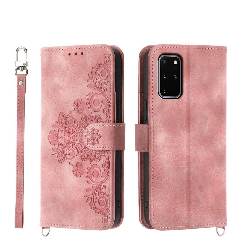 Για Samsung Galaxy S20+ δέρμα-feel λουλούδια ανάγλυφο πορτοφόλι δερμάτινη θήκη τηλεφώνου (ρόζ)