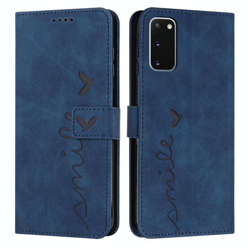 Για Samsung Galaxy S20 δέρμα αίσθηση καρδιά μοτίβο δερμάτινη θήκη τηλεφώνου (μπλε)