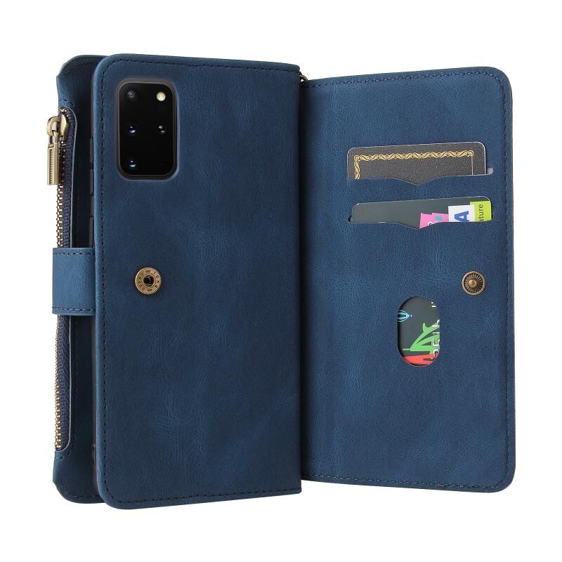 Για το Samsung Galaxy S20+ Skin Feel PU + TPU Οριζόντια Flip δερμάτινη θήκη με υποδοχή & 15 κάρτες Slot & πορτοφόλι & φερμουάρ τσέπη & Lanyard (Μπλε)