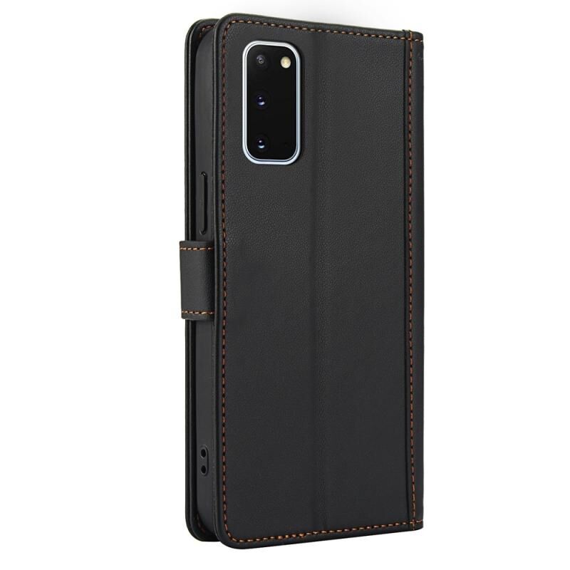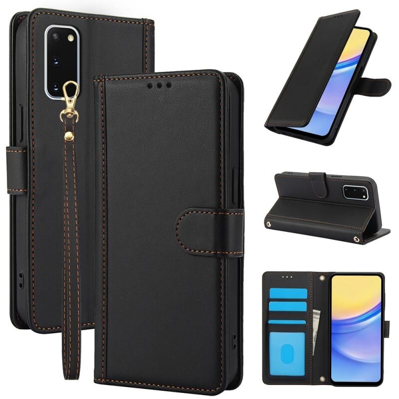 Για Samsung Galaxy S20 δέρμα αίσθηση καθαρό χρώμα κάρτα υποδοχές δερμάτινη θήκη τηλεφώνου με διπλή κορδόνι (μαύρο)