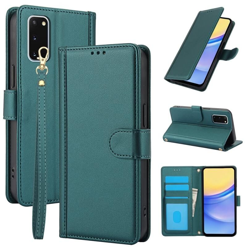 Για Samsung Galaxy S20 δέρμα αίσθηση καθαρό χρώμα κάρτα υποδοχές δερμάτινη θήκη τηλεφώνου με διπλό κορδόνι (πράσινο)
