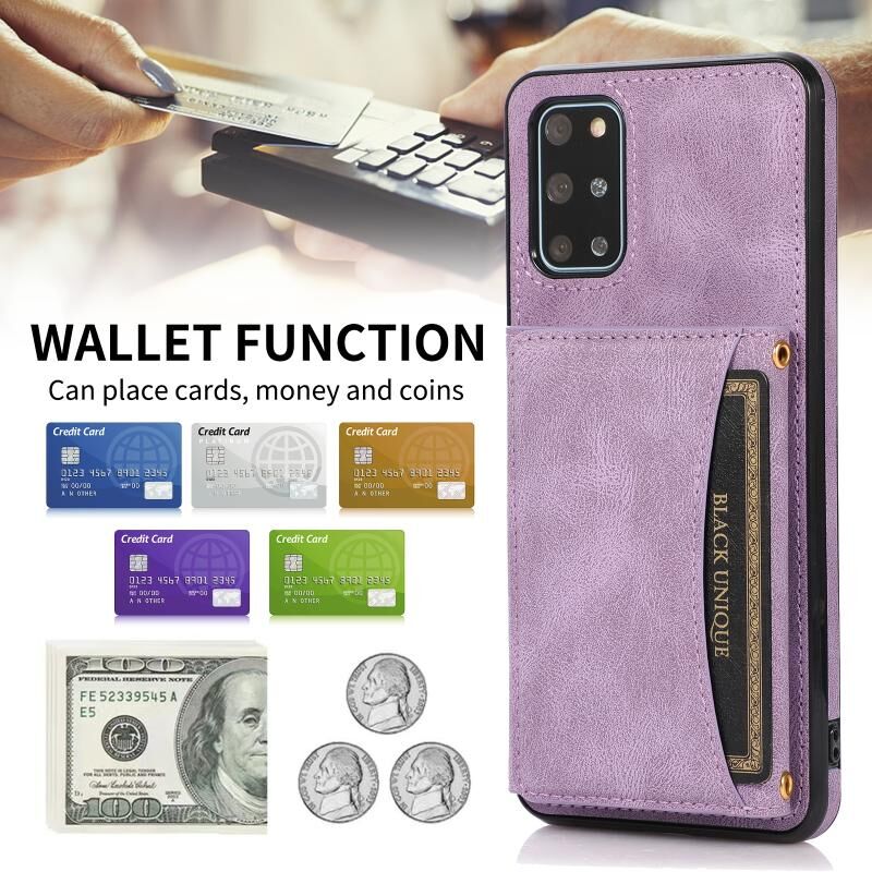 Για το Samsung Galaxy S20+ Τρεις-πτυχή δερμάτινη θήκη τηλεφώνου με υποδοχή για κάρτες & πορτοφόλι & θήκη (μωβ)