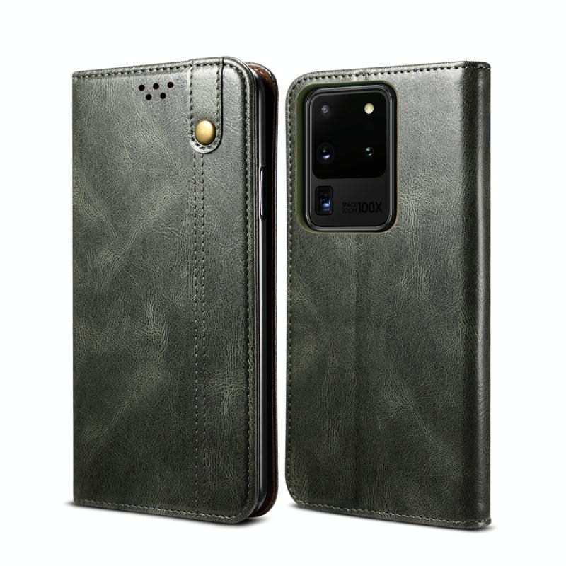 Θήκη δέρματος οριζόντιας αναδίπλωσης με απλή υφή Crazy Horse για Samsung Galaxy S20 Ultra με θήκες για κάρτες & πορτοφόλι (Σκούρο Πράσινο)