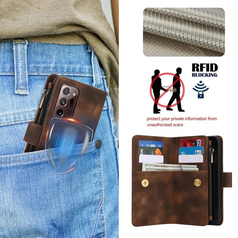 Για Samsung Galaxy S20 Ultra 5G Dream 9-Card φερμουάρ πορτοφόλι RFID δερμάτινη θήκη τηλεφώνου με κορδόνι (καφέ)