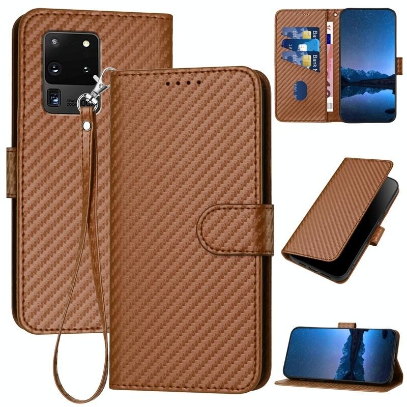Για Samsung Galaxy S20 Ultra 5G YX0070 Carbon Fiber Πόρπη Δερμάτινη θήκη τηλεφώνου με κορδόνι (καφέ)