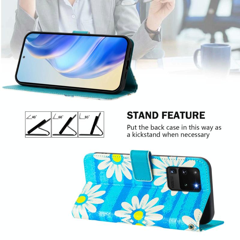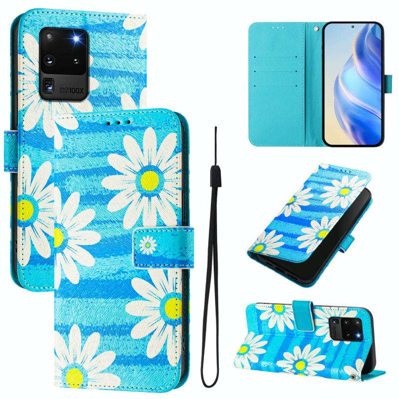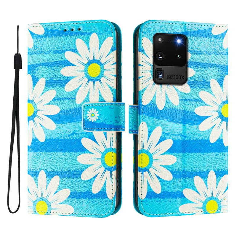 For Samsung Galaxy S20 Ultra Art Colored Drawing Pattern Leather Phone Case(Blue daisy)