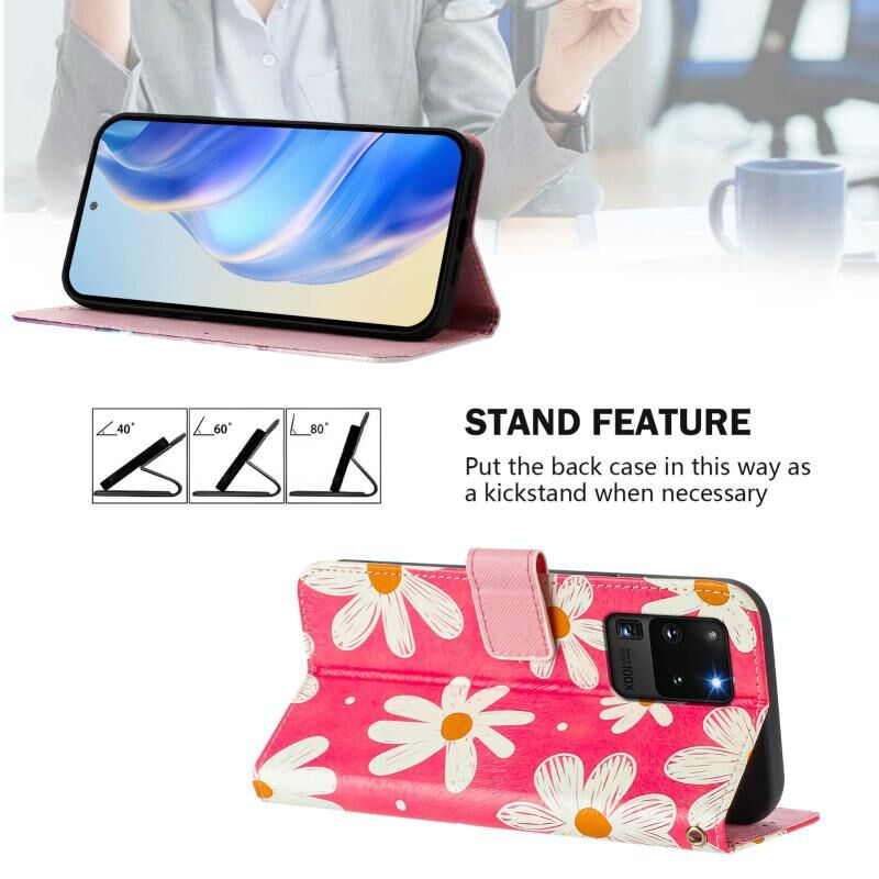 Θήκη τηλεφώνου Samsung Galaxy S20 Ultra από δέρμα με σχέδιο ζωγραφικής και πολύχρωμα σχέδια (Μπλε μαργαρίτα)