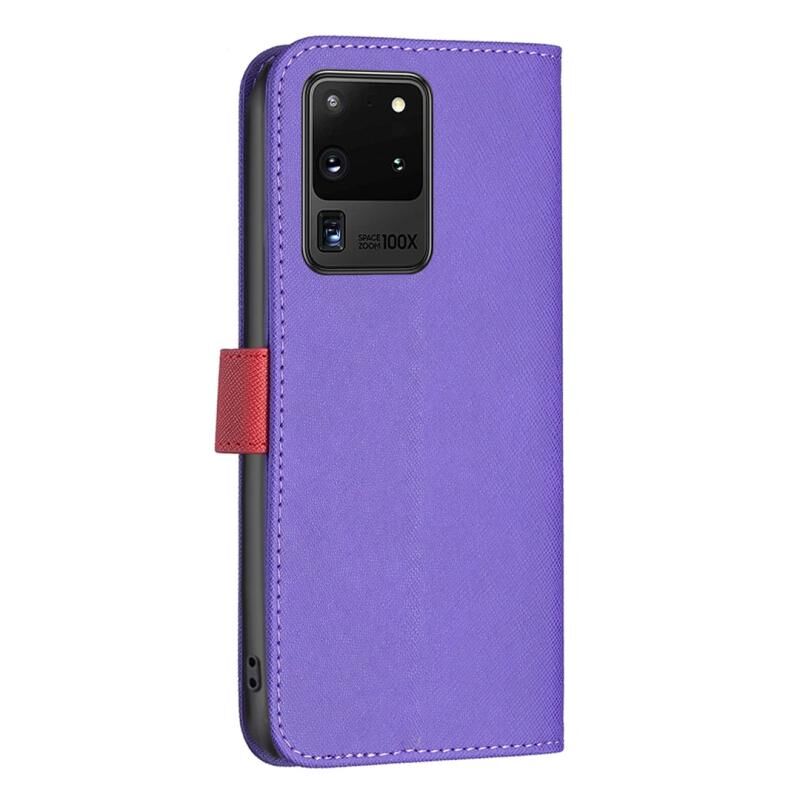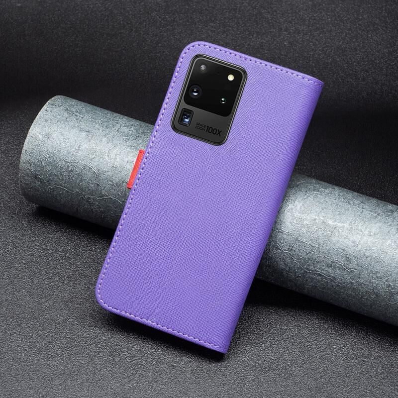 Για Samsung Galaxy S20 Ultra BF13 χρώμα ταιριάζει με σταυρό υφή δερμάτινη θήκη τηλεφώνου (μωβ)
