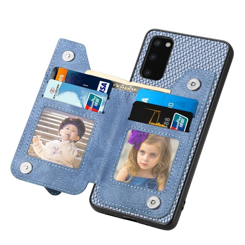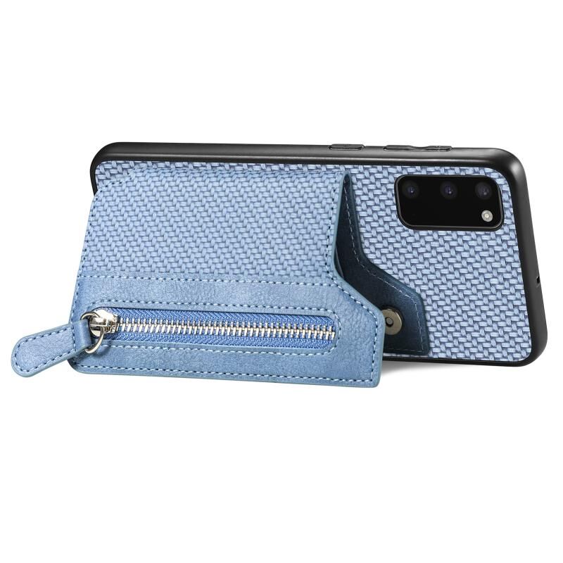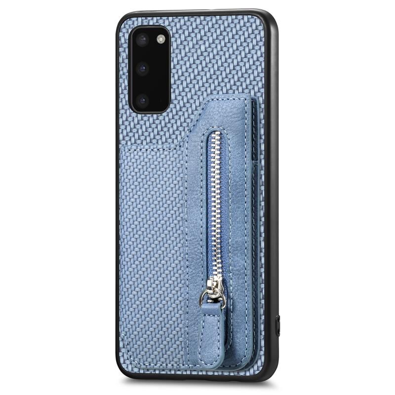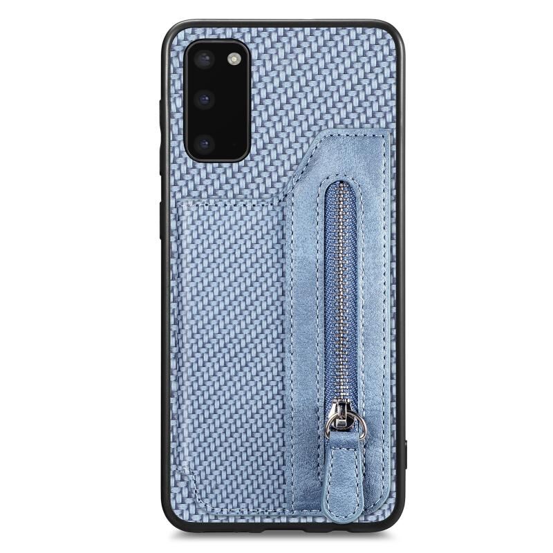 Για Samsung Galaxy S20 Ultra Carbon Fiber Οριζόντια Flip φερμουάρ πορτοφόλι τηλέφωνο υπόθεση (μπλε)