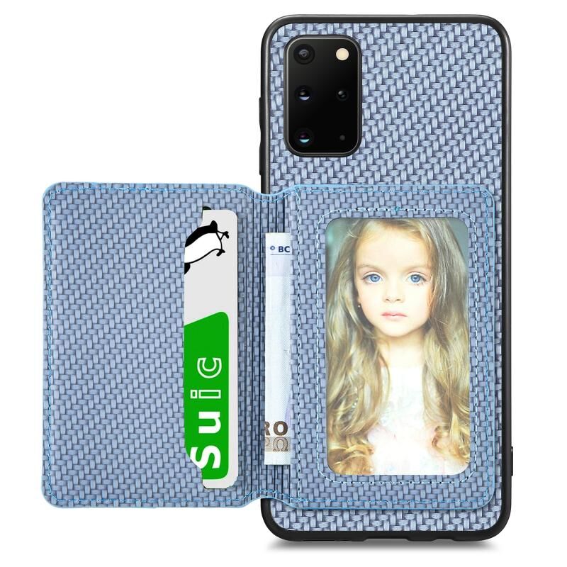 Για Samsung Galaxy S20 Ultra Carbon Fiber μαγνητική κάρτα πορτοφόλι τσάντα υπόθεση τηλεφώνου (μπλε)