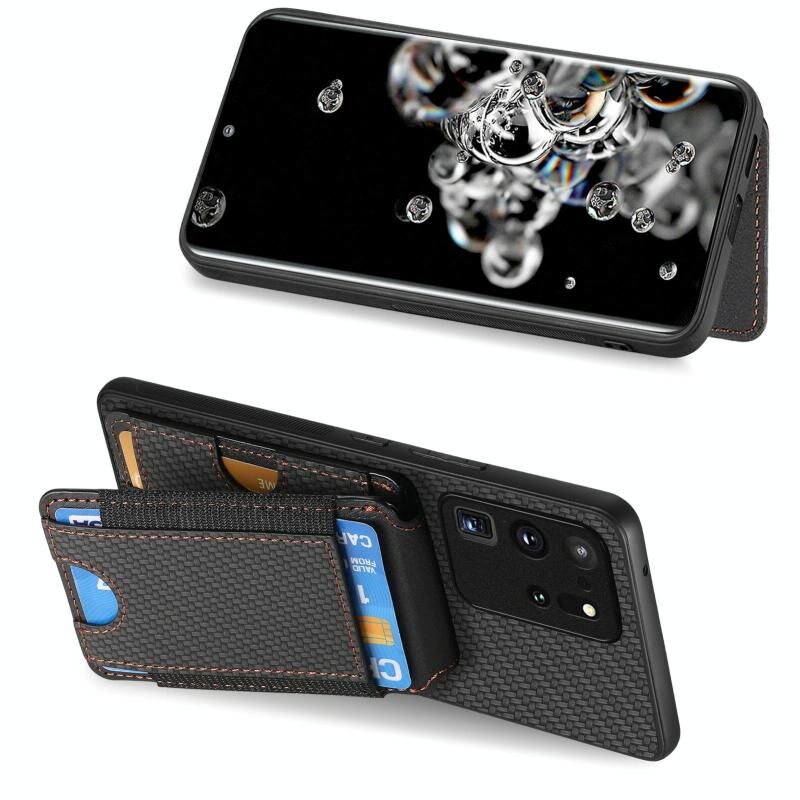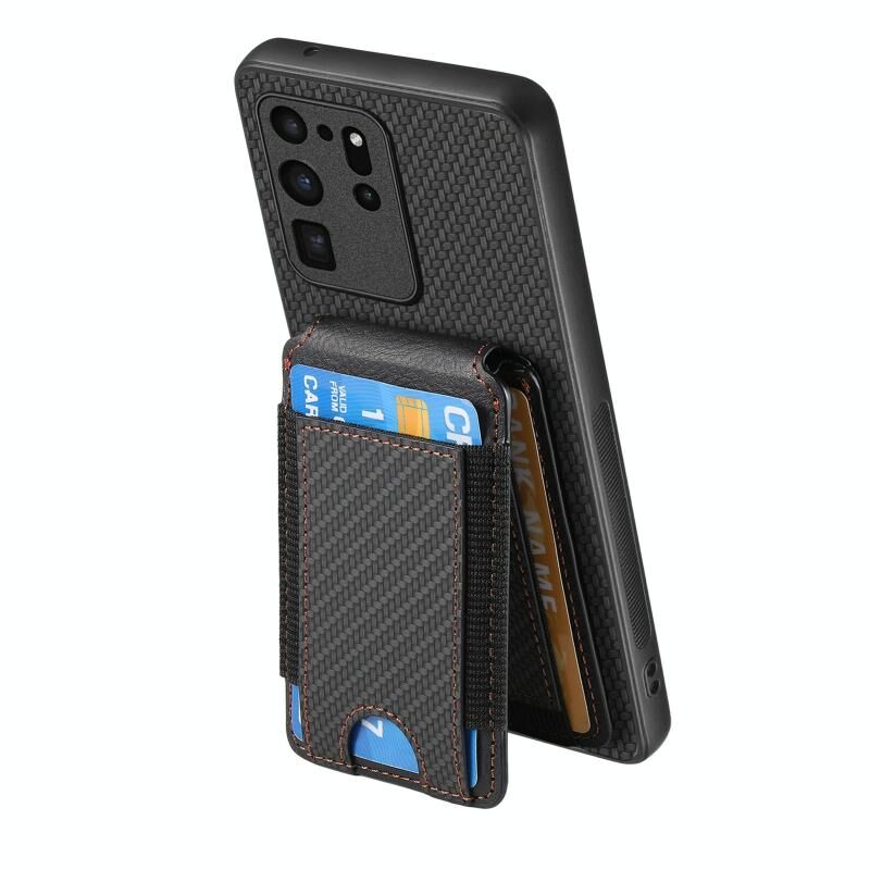 Για Samsung Galaxy S20 Ultra Carbon Fiber Κάθετη Flip Wallet Stand υπόθεση τηλεφώνου (Μαύρο)